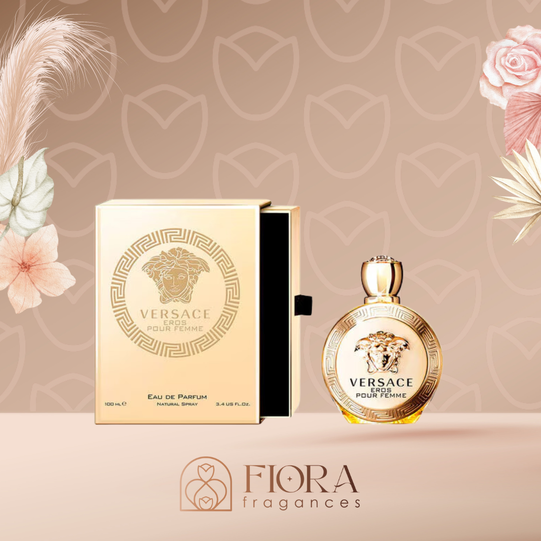 Eros Pour Femme Eau de Parfum is a captivating fragrance that embodies strength, individuality, and seduction. The fragrance is housed in a golden bottle adorned with Greca engravings and a central Medusa. It comes packaged in an elegant tiroir coffret.
